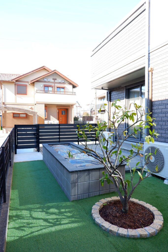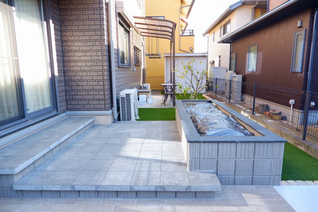 裏庭には家庭菜園スペースと、テラスを新たにつくり、雑草のお悩みから解放される快適なお庭空間へ。